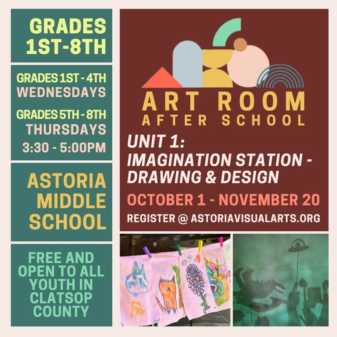 HISTORY: Art Room was founded in 2022 by Astorians Kiley Laws and Chloe Maglio to enrich the social, emotional, and academic development of Clatsop County's elementary age students. Art Room offered free art programing in partnership with the Astoria Library, and in 2022 and 2023, Art Room partnered with Astoria Visual Arts to create summer Art Camps. They were a huge success! In 2023, Art Room launched an after school program, which provided weekly art education throughout the academic year.