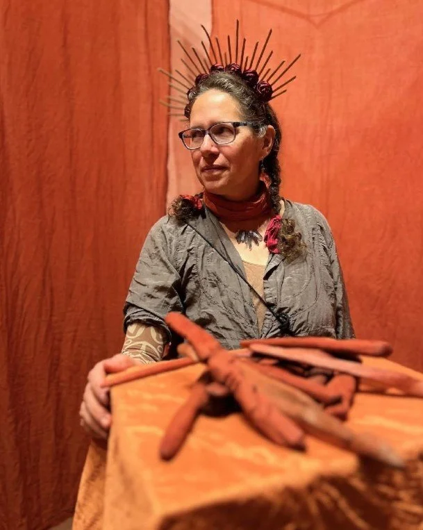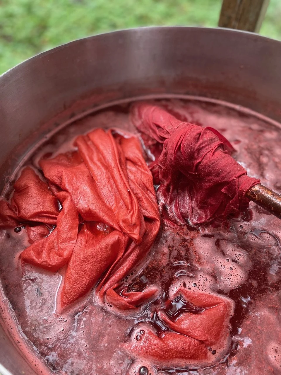 Madder Red organizer and curator Iris Sullivan Daire has been working with natural dyes for the last 30 years, including growing madder for the last eight, and has come to see madder as an embodiment of the empowered divine feminine force that works in collaboration with others. This exhibit is organized into three distinct sections. The first, Paths Towards Interdependence, showcases a collaborative installation featuring lengths of madder-dyed cloth, symbolizing the living forests that vividly illustrate the interconnectedness of all beings. The second section, Council of Community, presents a collection of artwork highlighting diverse perspectives and voices. Lastly, In Service to Life is an installation by Sullivan Daire, offering a unique exploration of our relationship with the natural world. Madder Reds is a follow up to the Indigo Matrix exhibition, organized by Sullivan Daire in 2022, which featured twenty artists from three countries.